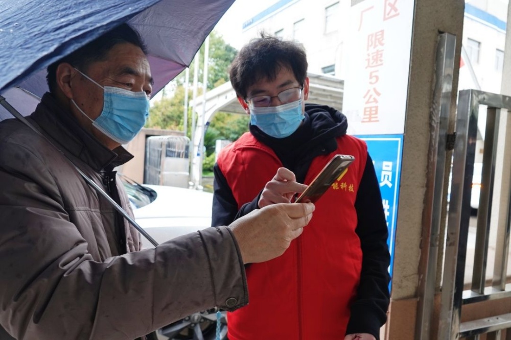 由于員工上班高峰期間門衛測溫查碼工作量較大,黨員志愿者聽聞后毅然加入查碼隊伍,努力守好公司防疫“安全門”。志愿者們每天在上班時段提前30分鐘到崗,他們戴好口罩,身穿紅馬甲,對進入員工和車輛進行檢測,引導員工有序測溫掃碼。
