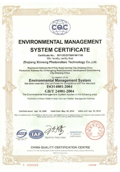 公司通過ISO14001:2004環境管理體系認證 2009-04-16 00:00:00 浙江芯能光伏科技股份有限公司 瀏覽次數 7315 上一條公司通過ISO9001:2000質量管理體系認證 下一條浙江省科技廳常務副廳長壽劍剛蒞臨我司調研