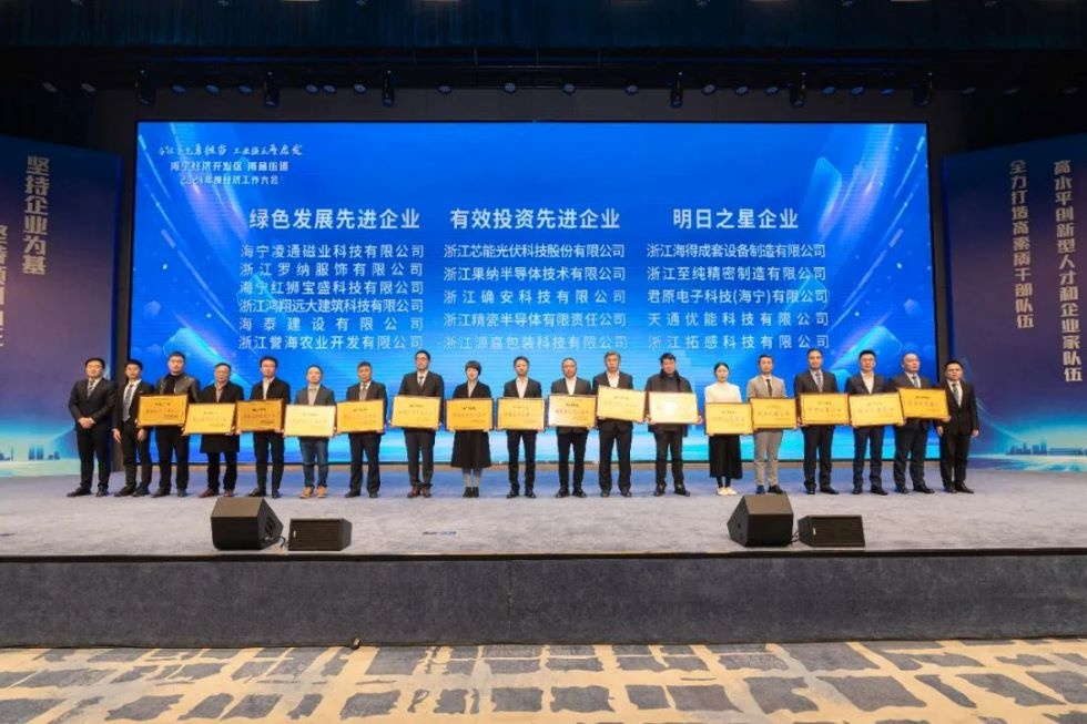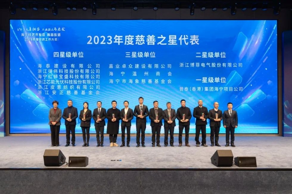 2024年2月26日,在海寧經濟開發區、海昌街道“奮楫爭先勇擔當 工業強區再出發”2024年度經濟工作大會上,芯能科技榮獲2023年度有效投資先進企業和慈善之星先進單位(四星級)。